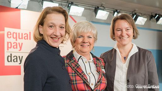 Von links nach rechts: Transparent gewinnt: Uta Zech (Präsidentin BPW Germany e.V.), Helene Wildfeuer (Vorsitzende dbb bundesfrauenvertretung), Henrike von Platen (Fair Pay Innovation Lab) werben für transparente Entgeltstrukturen in der Privatwirtschaft und im öffentlichen Dienst.