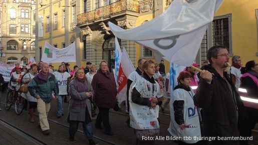 In der Tarifauseinandersetzung mit den Ländern haben sich am 6. März 2013 rund 1.000 Landesbeschäftigte in Erfurt an einer Großkundgebung auf dem Fischmarkt und vor