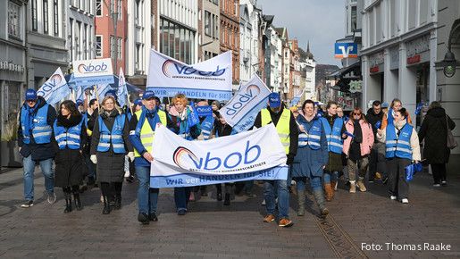 Etwa 400 Beschäftigte des öffentlichen Dienstes sind am 5. März 2025 in Hamburg auf die Straße gegangen, um ihre Forderungen in den laufenden Tarifrunden zu